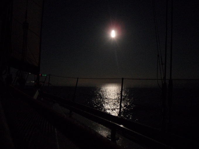 Durante a noite o vento continuou bom. Tivemos que ligar o motor por uma hora, pois as baterias estavam baixas. Isso provocou um cheiro muito forte dentro do barco. Algo está errado. Quando desligamos, continuamos velejando, mas o vento foi ficando muito fraco e passamos a velejar muito devagar. Preferi não ligar o motor, pois quero esperar o dia nascer para ver o que está acontecendo com ele. Ficamos nos arrastando até as 8:00 hs, quando chamei a Carol para o turno dela e abri o compartimento do motor. Era uma bobagem: o parafuso de retorno do diesel para o bico que foi arrumado em Vitória afrouxou com a vibração. O Edivaldo não deve ter apertado muito, pois é muito cuidadoso e deve ter ficado com medo de espanar o parafuso, e isso fez com que ficasse vazando um pouquinho de diesel do bico. Esse diesel, caindo no motor quente, provoca um cheiro muito ruim. Um apertão no parafuso e estava resolvido o problema! Ligamos o motor novamente e seguimos para Niterói, esperando chegar com a maré enchendo no começo da tarde.